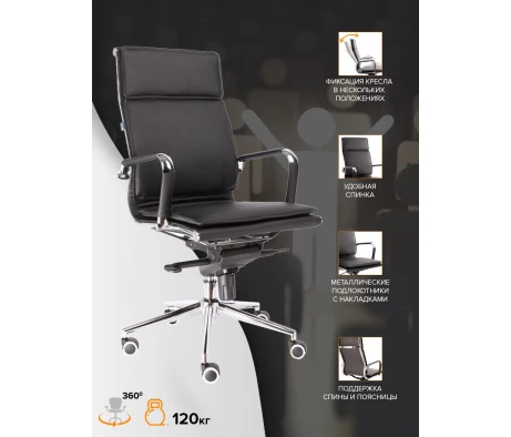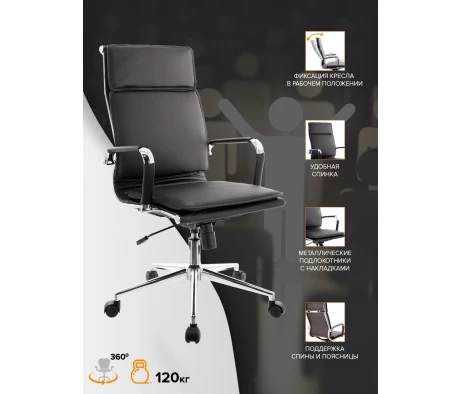 Кресло действительно поддерживает спину, на нем не устаешь сидеть часами. Оно очень устойчивое. Солидно и презентабельно выглядит. Кожзам плотный, но при этом набивка мягкая.